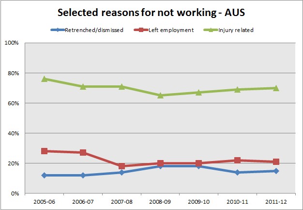 In 2011-12 68% of those asked said their reason for not working was injury related. This figure has remained relatively static over the last three years.