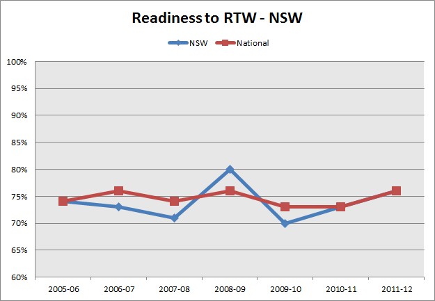 In 2011-12 approximately 76% of NSW workers who returned to work said they felt ready to do so.