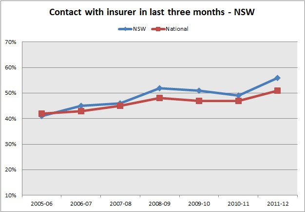 56% of NSW workers interviewed reported contact with their insurer in the last three months, above the national average of 51%.