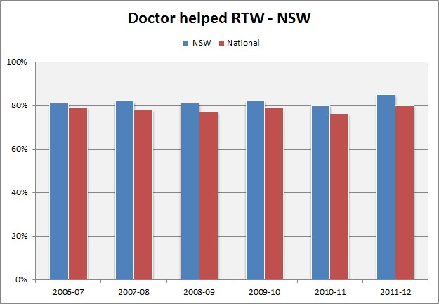 In 2011-12 85% of employees said that their doctor helped with return to work. This has increased over the last year and is above the national average.