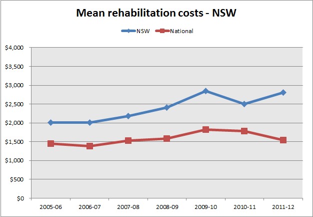 In 2011-12 the costs when rehabilitation was involved the cost was $1300 above the national average.