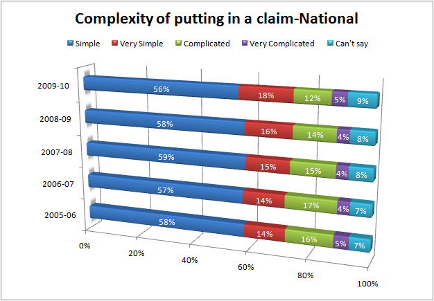 In 2009-10 69% of Victorian workers said it was either simple or very simple to put in a claim. This has improved from 65% five years ago.