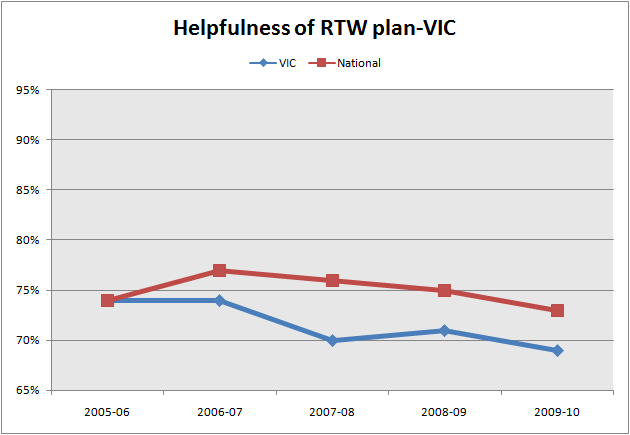 69% of Victorian workers found their RTW plan to be helpful, lower than the national average of 73%.